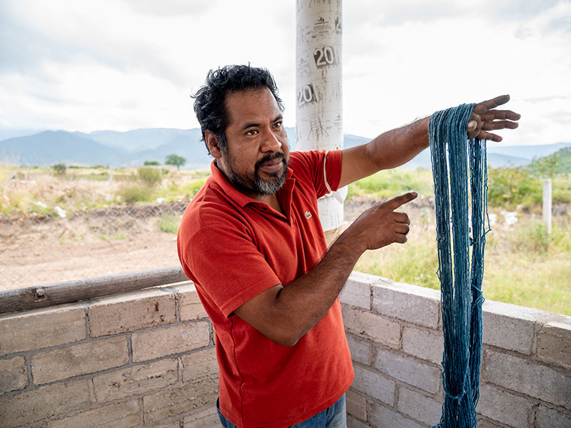 “Estamos muy contentos porque ya tenemos la nopalera con la grana y esperamos pronto tener producción que nos ayudará a no comprar un día el tinte rojo. La meta es producir hasta 20 kilos cada tres meses, suficiente hasta para vender a otros artesanos. Esto es una excelente entrada de recursos para todos los participantes. El añil llevamos seis años domesticándolo y ya vamos a ver los primeros logros”, comentó entusiasmado Julián desde el terreno comunal.